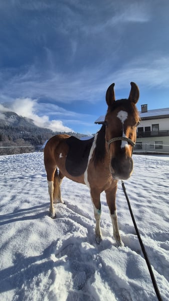 Maia ist eine im März 2023 geborene Pinto-Mix Stute mit viel Go Ca. 150cm groß & gesund Sie ist eine sehr aufgeweckte, freundliche Stute & brav händelbar. Die kleine ist noch roh, ist aber an Verkehr, Traktor & andere Tiere gewöhnt. Sie hat noch einiges zu lernen, zeigt sich aber stets bemüht- ist dem Alter entsprechend trotzdem gern mal abgelenkt. Sie bräuchte jemanden, der sich gut auskennt & bereit ist mit ihr einiges zu schaffen & sich viel zu beschäftigen. Ich denke Maia wäre total toll in der Vielseitigkeit. Springen, Western & Wanderreiten könnt ich sie mir auch sehr gut vorstellen. Nach einen persönlichen Kennenlernen von Pferd & Mensch können wir gerne weiteres besprechen