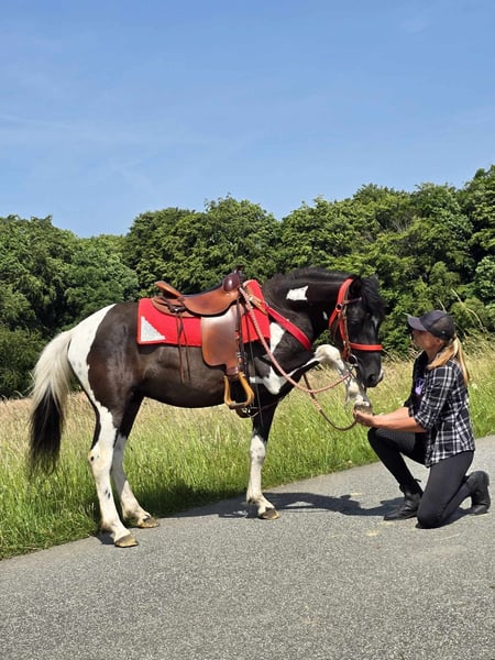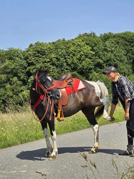 Leisure Mare "LEA" Pinto-Mix Mare for Leisure and Trail Riding* *Age*: 3 years, started under saddle and driven *Height*: approx. 1.36 m *Equipment*: E-pass, microchip, and vet check available *Price*: €4,900 *ridden and driven* A beautiful mare that is ideal for trail riding and leisure activities. She is a versatile leisure horse, well-suited for both English and Western riding. She has a wonderful, balanced temperament and feels comfortable in a herd, but is also well-adjusted in a stable. ### *What sets her apart:* - Used to open stable and herd living, box living is also no problem - Ideal for leisure and trail riders - Very balanced and uncomplicated to handle *Interested?* Feel free to call us at *0171-4001968* (daily from 8 AM to 8 PM). *Please no emails or WhatsApp, only calls!* *Additional Information:* - Equipment and transport can be organized at a low cost. - Our farm shop offers a small selection of used Western saddles. - *Installment payments are not possible.* *Customer Service:* - Every customer receives a contractually guaranteed *exchange right of three months.* - A trial ride with us is possible, so you can get to know your dream horse. For €35, you can ride, have it ridden out for you, go for a walk, or more. If desired, you can also test a second horse for €25. This amount will be deducted from the purchase price of a horse on the same day. *Special Features:* - If picked up immediately with a horse trailer, you will receive *a discount of €100.* - We conduct the sale with a transparent trial ride to ensure it is the right horse for you. *Legal:* - We are the sole and unrestricted owners of the images; the image rights belong to us. *Unauthorized use of the images is prohibited.* - Please note that this is a living horse. Our information is based on the impressions of the caretaker and does not constitute guaranteed characteristics. - Advertisements will be deleted immediately once the horses are sold. *Interested?* Feel free to call us at *0171-4001968* (daily from 8 AM to 8 PM). *Please no emails or WhatsApp, only calls!*