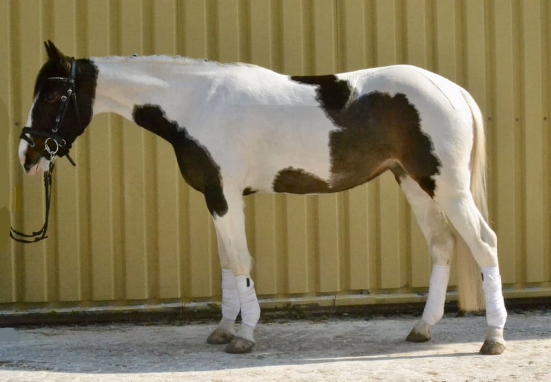 Zum Verkauf steht eine Scheckstute (6 Jahre, ca. 1,50 m), die sich als unkomplizierte und ehrliche Partnerin für Freizeit, Gelände und den täglichen Umgang zeigt. Die Stute ist brav im Umgang sowie unter dem Reiter und angenehm zu sitzen. Sie arbeitet motiviert mit und zeigt sich sowohl auf dem Platz als auch im Gelände zuverlässig. Im Gelände ist sie alleine sowie in der Gruppe unterwegs und dabei verkehrssicher. Auch im täglichen Handling ist sie unkompliziert (rangniedrig, schmiede- und verladefromm). Aufgrund ihres ausgeglichenen Charakters eignet sie sich gut für Wiedereinsteiger, schwächere Reiter oder als Familienpferd. Eine aktuelle klinische Ankaufsuntersuchung ohne Befund liegt vor. Weitere Untersuchungen sind selbstverständlich möglich. Videos (Reiten, Gelände, Umgang) können gerne zur Verfügung gestellt werden. Probereiten ist nach Absprache möglich (30 €, wird beim Kauf verrechnet).