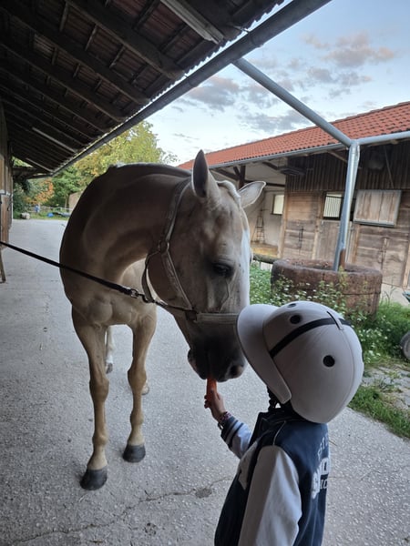 Unsere junge, bildhübsche und kerngesunde Polo-Dame Medalla sucht ein neues Zuhause. Wir haben Medalla im 2021 selbst aus Argentinien in die Schweiz importiert (CH-Papiere) und reiten sie im Sommer Polo und im Winter Western. Sie ist im Umgang mit Kindern und Anfängern ein Goldstück und stets artig und motiviert. Ohne Probleme lässt sie sich verladen, liebt das Ausreiten alleine oder in einer Gruppe. Sie kann alleine aber auch in einer Gruppe stehen. Wir geben Medalla nur an einen super Platz, am liebsten auch an jemanden der mit Ihr Polo, Bodenarbeit und noch Western oder Klassisch reitet.
