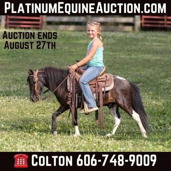 ONLINE AUCTION Place your bids at www.PlatinumEquineAuction.com Starting Bid $3500 Auction ends August 25th, 2024 Need a new saddle? Check out White Rock Saddles on our website or Facebook! Let Buzz Lightyear take your children to infinity… and beyond! HE IS ONE OF A KIND. We always ask the question, HOW MUCH IS SAFETY WORTH? With Buzz, safety doesn’t even cross the mind! The possibilities are limitless with this one of a kind guy in your barn. Standing at 36 inches tall, he is small, mighty and personable. Buzz is the pony that will raise your small cowboys and cowgirls for years to come at only 4 years old. Don’t let his age fool you, he has a solid head on his shoulders and is happy to tote his kids around all day. He is super gentle, kind and honest. Walk out into the pasture, and have the kids walk right up to buzz to put the halter on him. He is a pony, you can turn your back on and trust him with the kids! Buzz is tolerant and forgiving. He would excel in any home, camp or school. He is a family pony with a heart of gold! Located in Ewing, KY. Contact PR QUALITY HORSES Colton 606-748-9009 for more info. ONLINE AUCTION Place your bids at www.PlatinumEquineAuction.com Starting Bid $3500 Auction ends August 25th, 2024 Need a new saddle? Check out White Rock Saddles on our website or Facebook!