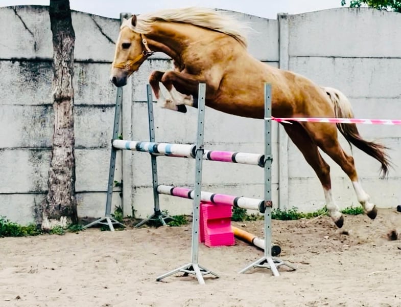 A beautiful, eye-catching 3-yo stallion (born 2022) polish sporthorse breed (no spanish lines). Very good movement and jumping technique - a promising sport and breeding prospect. Full brother to licensed stallion Diamond Dealer-J (OgierZoltar x Corleone Z) https://www.colored-stallions.com/diamond-dealer-j Sire Zoltar: https://www.colored-stallions.com/zoltar His mother Dita-P, is a daughter of the stallion Corleone Z, whose offspring perform very well in both disciplines: dressage and jumping. Dita-P's full sister mare Dirty Lady-P participated in the World Championships for 5-year-olds in dressage. Last photos dam and sire and 2 full brothers. Movies can be send on Whatsapp Also other palomino and cremello horses available. https://sites.google.com/grupadrewnex.pl/palominojaskulscy/strona-g%C5%82%C3%B3wna/foals-horses-for-sale Facebook @PalominoJaskulscy Located south-west Poland 55-093 Piecowice