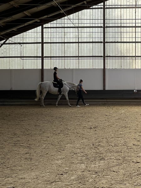 Diese wunderschöne Fliegenschimmel-Stute besticht nicht nur durch ihre schöne Optik, sondern vor allem durch ihr außergewöhnlich sanftmütiges und geduldiges Wesen. Sie ist stets kopfklar, ausgeglichen, aufgeweckt und vermittelt ihrem Reiter jederzeit ein sicheres Gefühl. Durch ihre Erfahrung als Schulpferd bringt sie viel Routine und Gelassenheit mit. In den vergangenen drei Jahren wurde sie ausschließlich von zwei Reitern geritten und täglich gearbeitet – entweder unter dem Sattel oder an der Longe. Dabei wurde sie regelmäßig mehrmals pro Woche im Unterricht gefördert und verfügt über eine solide, gute dressurmäßige Grundausbildung. Sie ist leicht zu reiten, im Umgang brav sowie menschenbezogen. Besonders hervorzuheben ist ihre Zuverlässigkeit: Sie zeigt keinerlei Unarten wie Bocken o. Ä. und eignet sich daher sehr gut für Anfänger oder Wiedereinsteiger. Aufgrund von Nachwuchs in der Familie schaffen wir es leider nicht mehr, ihr genug Zeit zu widmen. Wir wünschen uns für diese besondere Stute ein liebevolles Zuhause, in dem sie weiterhin wertgeschätzt und sinnvoll beschäftigt wird. Bei ernsthaftem Interesse freuen wir uns über eine persönliche Nachricht.