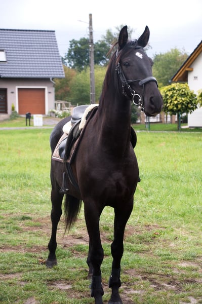 **For Sale: Stunning Polish Halfbred Gelding** Introducing a remarkable Polish Halfbred gelding, born in 2019, standing at an impressive 170 cm. This striking black beauty is not only eye-catching but also possesses a fantastic jumping ability that will surely impress riders of all levels. With a gentle temperament and a willingness to learn, he is perfect for both aspiring competitors and leisure riders alike. His athletic build and natural talent make him an excellent prospect for show jumping, while his calm demeanor ensures he is a pleasure to work with. This gelding has been well cared for and is up to date on all vaccinations and farrier work. He is ready to find a new partner to share adventures with, whether in the arena or out on the trails. If you are looking for a talented and versatile horse with a bright future ahead, this Polish Halfbred is the perfect match. Don’t miss the opportunity to make him a part of your equestrian journey! For more information or to arrange a viewing, please contact us.