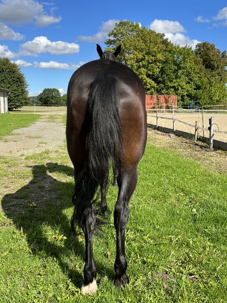 Super fokuste merrie. Uitstekende technische vrijspringen. Ze is in september 2022 onder het zadel gebracht in drie gangen. Probleemloos in het terrein. Ze heeft een asymmetrische achterhand. Linkeroog met uveïtis. Eenvoudig te dekken - top karakter! Ze heeft nog een hengstveulen aan de voet, geboren bij Up van’t Paradijs op 20-07-2025 ELITE ✅ Ik verkoop meerdere paarden wegens tijdgebrek. Meer video's en foto's stuur ik graag via WhatsApp.