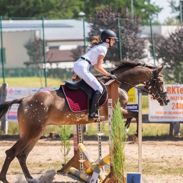Te koop: een tarantowata (donskleurige) ruin van het wielkopolski ras. Geboren in februari 2021. Dochter van de beroemde hengst Vigo Heywood HZ, moeder is Dama van Egerro. Hoogte: 1,60 m. De ruin is gezond en heeft geen blessures. Ze wordt regelmatig getraind in springen. Ze heeft al haar eerste wedstrijden gereden. Voor geïnteresseerden is een zeer goede TUV beschikbaar ter inzage. Neem gerust contact op voor meer informatie.