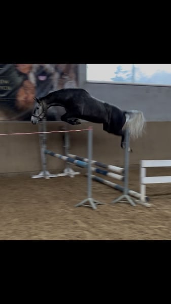 Przedstawiamy piękną, młodą klacz. Urodzona w 2021 roku, ta siwa klacz o wzroście 165 cm jest idealnym kandydatem dla jeźdźców i hodowców poszukujących wszechstronnego konia do skoków. Dzięki swojemu pochodzeniu wykazuje duży potencjał w dyscyplinie skoków, łącząc zwinność, siłę oraz dobre predyspozycje ruchowe. Klacz w trakcie zajeżdżania. Zapraszamy do kontaktu w celu uzyskania dodatkowych informacji i umówienia się na prezentację tej obiecującej klaczy.