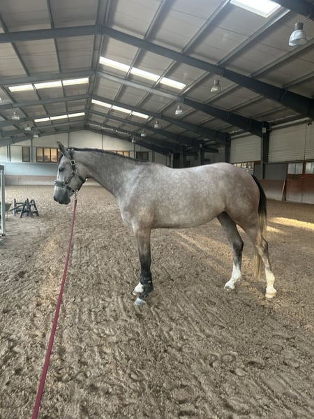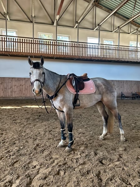 Na sprzedaż klacz ur. 05.2020, polski koń sportowy, 165cm. De Chanel Blue to klacz z predyspozycjami do sportu, dziadek od strony ojca to Cornet Obolensky, a od strony matki Chacco-Blue – bardzo mocne, sprawdzone sportowo pochodzenie. Klacz z bardzo dobrą głową – spokojna, grzeczna i chętna do współpracy. Jezdna, delikatna na pomoce, bardzo delikatna w pysku, dobrze reagująca na dosiad. Ze względu na swoją delikatność tylko dla doświadczonej osoby. Bezproblemowa w obsłudze – przy zabiegach pielęgnacyjnych, była golona bez najmniejszych problemów, bezpieczna w codziennym użytkowaniu. Padokowana w każdą pogodę, bezproblemowa w stadzie. Szanuje ogrodzenia. Nigdy nie chorowała i nie przebyła żadnej kontuzji. Nie posiada żadnych złych nawyków ani narowów. Klacz dobrze rokująca do dalszego rozwoju sportowego, przy dobrym prowadzeniu koń z bardzo dużymi predyspozycjami. Siwa szuka swojego nowego człowieka, który wykorzysta wszystkie jej możliwości. Do obejrzenia w okolicach Oświęcimia, Województwo małopolskie