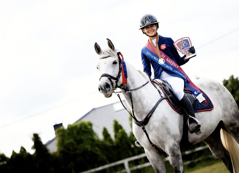 Schöne, achtjährige, rahmige Stute für den Sport. Sowohl im Springen als auch im Dressurreiten, aufgrund der schönen Bewegung. Ausgezeichnete Abstammung: Number One x O-Bijou de L'ocean / Bijou Be. (166 cm groß) Ruhig und ausgeglichen. Im ständigen sportlichen Training, unter der Aufsicht eines Physiotherapeuten und Hufschmieds. Derzeit wird sie von einer Reiterin der Nationalmannschaft der Kinder geritten. Aktuelle Medaillengewinnerin der Schlesischen Meisterschaften in der Kategorie Junioren A. Sie hat die Reiterin von Wettbewerben über 80 cm bis 120 cm eingeführt. Vertraut mit der Wettkampfatmosphäre, problemlos im Transport und bei Pflegebehandlungen. Geht ins Gelände, ist auf der Weide. Gesund und nie verletzt. Freundlicher und ruhiger Charakter, lernwillig. Ideal sowohl für ein Kind, das mit dem Reiten beginnt, als auch als erstes großes Pferd nach einem Pony. Natürlich auch für Erwachsene geeignet. Besitzt einen FEI-Pass, Möglichkeit des Verkaufs mit einem neuen, passenden Equipe-Sattel. Weitere Informationen gerne per privater Nachricht. 501 579 729 Ich lade ein, Standort Częstochowa.