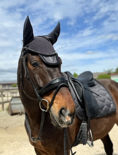 Bildhübscher Wallach sucht passenden Menschen mit Erfahrung und Freude an einer Aufgabe Schweren Herzens habe ich mich dazu entschieden, meinen 12-jährigen Wallach Empik zu verkaufen. Er ist ca. 1,65 m groß und ein vielseitiger Allrounder mit viel Potenzial. Empik überzeugt in der Dressur mit schönen, fließenden Bewegungen und lässt sich angenehm über Gewicht und Sitz reiten. Auch mit wenig Zügeleinsatz ist er fein an den Hilfen. Im Springen zeigt er ebenfalls großes Talent und wurde bei den Vorbesitzern bis zur Klasse M gefördert. Er springt motiviert, zuverlässig und mit Übersicht. Im Umgang ist Empik grundsätzlich ein sehr liebes, freundliches und menschenbezogenes Pferd. Es kann jedoch vorkommen, dass er sich in unerwarteten Momenten losreißen möchte. Deshalb braucht er auch am Boden einen souveränen Menschen, der ihm Sicherheit gibt und klare Grenzen setzt. Er ist ein intelligentes, lernwilliges Pferd, das einen sicheren und konsequenten Reiter braucht. Wer Freude daran hat, mit einem talentierten Pferd weiterzuarbeiten und noch eine spannende Aufgabe sucht, findet in Empik einen Partner mit viel Entwicklungspotenzial. Bei klarer Führung und einer vertrauensvollen Bindung zeigt er sich leistungsbereit, aufmerksam und sehr angenehm im täglichen Umgang. Beim Ausreiten ist er aktuell noch etwas unsicher und braucht einen Reiter, der ihm Sicherheit vermittelt. Mit Routine und Vertrauen wird er jedoch zunehmend entspannter. Empik wird nicht aus Zeitdruck oder Not verkauft. Nach drei gemeinsamen Jahren bin ich zu dem Entschluss gekommen, dass wir nicht zusammenfinden. Daher wünsche ich mir für ihn einen passenden Menschen, bei dem er sein volles Potenzial entfalten kann und der seine Qualitäten zu schätzen weiß.