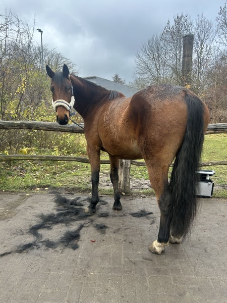 6-jähriger polnischer Warmblut-Wallach Tarzan ist ein kluges, sensibles Pferd mit guter Auffassungsgabe. Er kennt den Umgang mit Zaumzeug, Sattel und Reitergewicht und wurde bereits in Schritt, Trab und Galopp angeritten, jedoch nicht weiter ausgebildet. Er steht seit einigen Monaten aufgrund mehrerer Unfälle meinerseits. Daher eignet er sich für erfahrene Pferdemenschen, die Freude daran haben, ein junges Pferd in Ruhe weiter aufzubauen. Stockmaß ca. 1,64 m (geschätzt). Im Umgang zeigt er sich aufmerksam, menschenbezogen und lernwillig. Er braucht eine ruhige, klare Hand und ist kein Anfängerpferd. Tarzan fühlt sich in geschützter Umgebung (z. B. Halle oder Roundpen) deutlich wohler und hat auf offenen Reitplätzen aktuell noch Unsicherheiten, wie losreißen,die mit Geduld und Training gut weitergefördert werden können. Tarzan ist gesund und gepflegt. In der Vergangenheit hatte er eine Verletzung an der Schulter, die vollständig verheilt ist und ihn nicht einschränkt. ⚠️ Probereiten ist aktuell nicht möglich, da er seit längerer Zeit nicht geritten wurde. Er ist nicht ausgebildet,nur leicht angeritten. Kennenlernen, Putzen, Führen und Vorstellen vom Boden aus sind selbstverständlich möglich. Nur in fördernde, passende Hände Bei ernsthaftem Interesse gern per PN melden.
