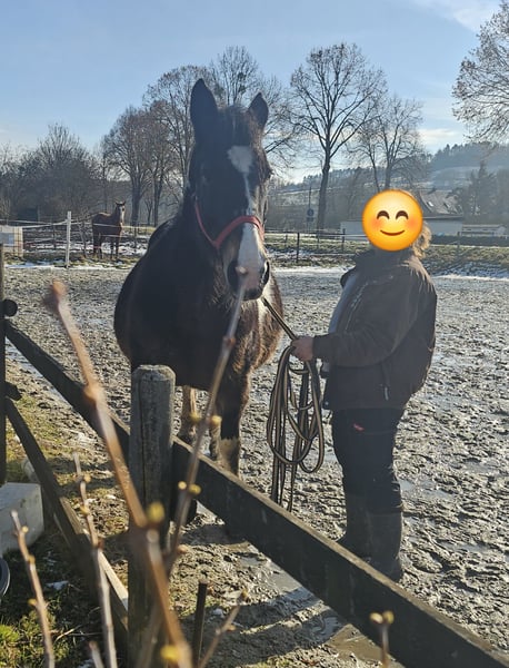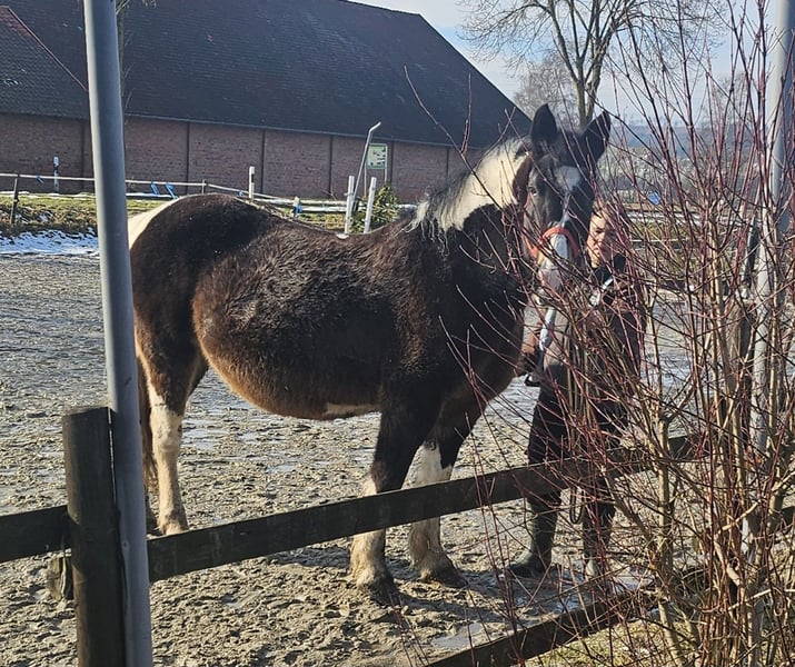 Wir sind ein Betrieb welcher sich um psychisch erkrankte Menschen kümmert. Leider müssen wir uns von unserer Relga trennen. Wir haben sie erst im September gekauft, jedoch haben wir feststellen müssen, dass sie wohl tragend ist. Wirtschaftlich haben wir nicht die Möglichkeit sie bis zum Absetzen des Fohlens aus dem laufenden Betrieb freizustellen. Relga wurde bei uns in der tiergestützten Intervention eingesetzt und wurde von Klienten gepflegt und geritten auf dem Reitplatz und im Gelände. Relga steht bei uns im Offenstall. Das letzte Fohlen ist am 01.03.2025 geboren, eine Deckbescheinigung liegt uns leider nicht vor. In Polen wurde Relga bis 2025 auch gefahren.