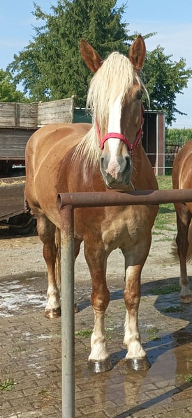 Verkauft wird eine 6 jährige Kaltblutstute, WH 163 cm , ein und zweispännig gefahren, ohne Scheuklappen und normalen Gebiß im Straßenverkehr zu fahren, ehrliches unerschrockenes Pferd, auch ohne Hilfspersonen anzuspannen, egal im Ein oder Zweispänner. Bei Interesse oder weiteren Fragen , gern melden. Der Preis ist verhandelbar.