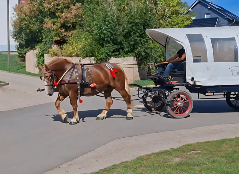Beautiful draft horse mare for sale. Her name is Resi - 7 years old - 1.68m. She is a very sweet, affectionate mare and is ridden out on trails, both in a group and alone. She has nice, smooth gaits and is comfortable to sit on. Beginners, re-riders, or heavier riders are no problem for her. Resi has also been driven both single and double. She is safe for pulling and on the road. Tractors, motorcycles, barking dogs, children... she remains calm around them. Familiar with carriage and wagon rides. If interested, just give us a call. Trial riding and driving is possible.