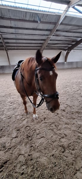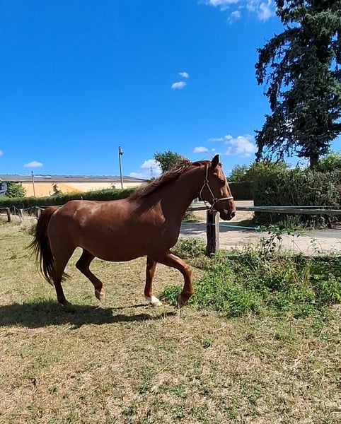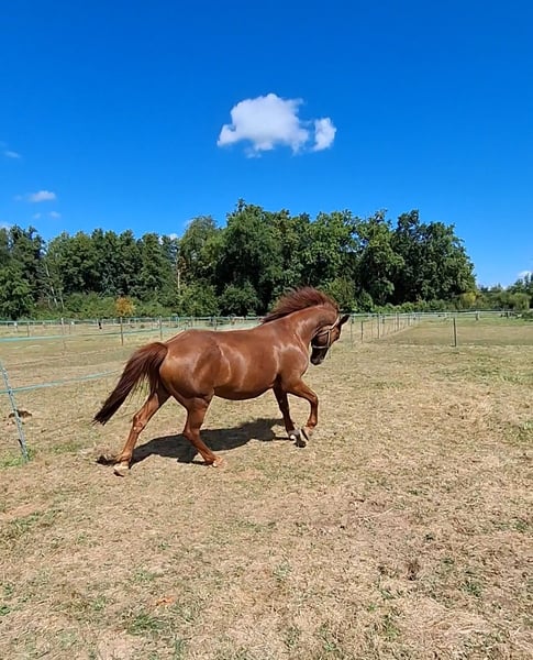 Balu is 13 years old. Unfortunately, I do not feel I am doing him justice; he is very intelligent and learns quickly. When under too much pressure, he can become spookish, buck, and sometimes nippy (depending on the situation). He is also able to walk calmly in the field, as he tends to try to follow when riding with a group. He is also happy to walk on a lead line. He is very dominant and not suitable for beginners. When Balu was purchased, a case of rain rot was diagnosed, but it has almost completely healed. Unfortunately, two of his teeth are still missing, although the other two have been replaced. His teeth were treated in May. Please feel free to contact me if you're interested.
