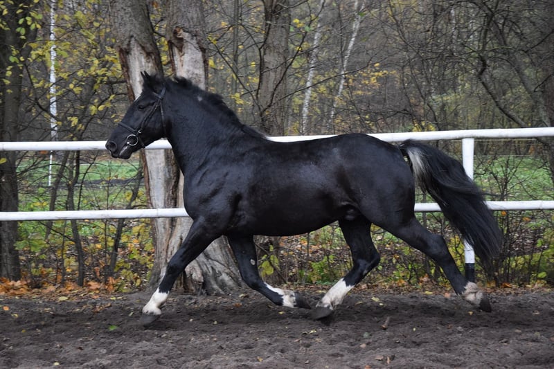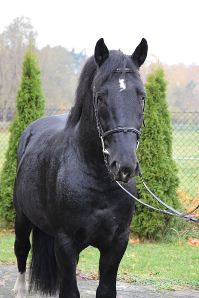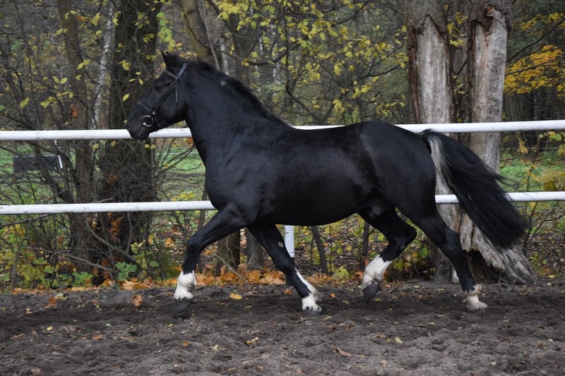 4j. Polnische Kaltblutmix Wallach, 157, Barocktyp Dieser bildhübsche, lackschwarze Kaltblitmix (Vater: Kaltblut, Mutter: Warmblut) Wallach wurde am 2021 geboren und misst aktuell 157 cm. Er besticht durch sein korrektes Gebäude, seine elegante Erscheinung und vor allem durch seinen besonders lieben Charakter. Menschen gegenüber zeigt er sich sehr zugewandt, freundlich, verspielt und aufgeschlossen. Trotz seines jungen Alters ist er bereits erstaunlich cool im Umgang und stets brav. Er wurde regelmäßig entwurmt. Er befindet sich altersgerecht noch in der Entwicklung, wurde aber bereits spielerisch und mit viel Geduld angeritten. Unter dem Sattel zeigt er sich lernwillig, aufmerksam und vielseitig einsetzbar. Grot ist ganz bequiem und leicht zu sitzen. Kennt Halle und Gelände. Lernt ganz schnell und ist focus am Arbeit. Schmied und Verladefromm Standort liegt in 86-200 Chelmno/Polen und eine günstiger Transport ist möglisch. Bitte senden Sie bei Interesse selbst eine Nachricht. Kann auch per Whatsapp +48784738028