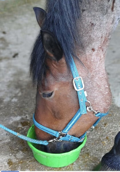 Koudbloed mix ruin, gereden in alle drie de basisgangen op watertrense, licht aan de hand, kan ondanks zijn grootte kleine cirkels galopperen, onbevreesd, zeer trittsicher, gaat door water, verkeer, honden, hoefsmid, laden... geen probleem, e-hek veilig, herd-vertrouwd, houdt van de stallat, komt op commando, brengt zijn voerbakje... MAAR: een hekel aan grondwerk als hij geen nut erin ziet, begint dan te steigeren, stangenwerk doet hij uitstekend, laat zich niet graag door vrouwen iets vertellen, dit is de reden van overdracht. Onze stalmeiden voelen zich niet prettig bij hem. Daarom graag overdracht aan (mannelijke) persoon die hem werk geeft en uitdaagt, zou een top trekpaard zijn. Absolute prioriteit ligt bij de geschiktheid, niet bij de prijs.