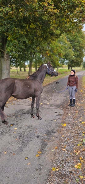 Raban – Poney de selle polonais Né en 2022 Père : Brylant EL Poney Welsh Actuellement environ 150–152 cm de haut. Pas encore monté, mais très sage et sans complications. Un cheval magnifique avec un caractère merveilleux, de beaux mouvements et un excellent saut. Plutôt calme, pas trop fougueux. Il a grandi au pré, sans complications. Le prix augmentera avec l'entraînement. Transport possible, vidéos disponibles par Whatsapp.
