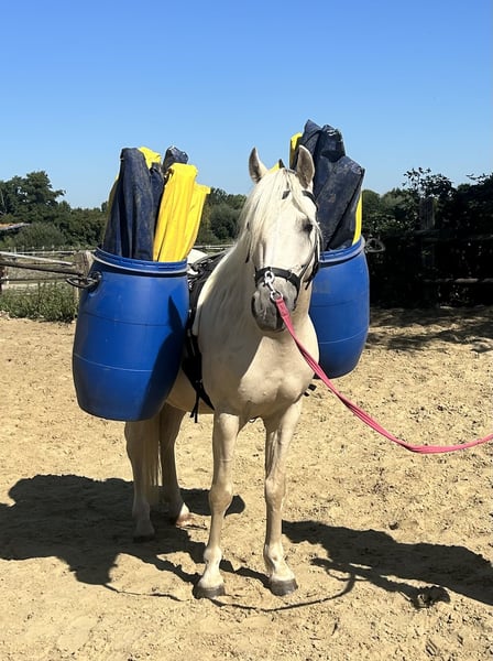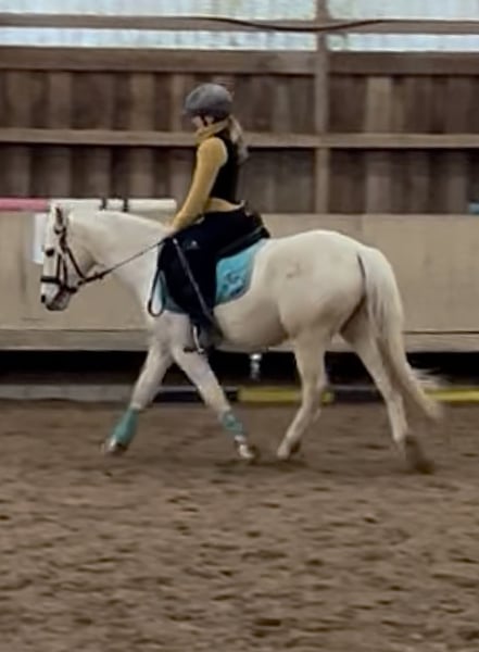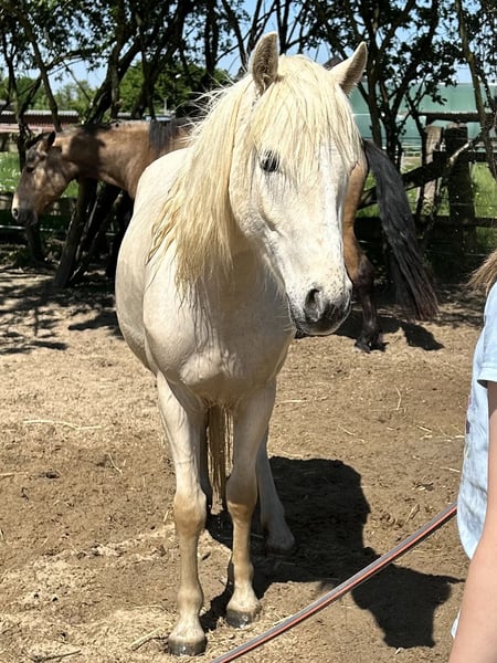 Flocki ist ein hübscher, heller Palominowallach mit 3 guten GGA und hervorragenden Eigenschaften als Kinder-, Freizeit- und Sportpony. geb 09.05.2020 Stm 1,35m Er ist menschenbezogen, lernwillig und sehr brav im Umgang. Flocki geht mit Kindern ins Gelände, sowohl alleine als auch in der Gruppe. Er wird von ihnen im Parcours gesprungen, Dressur geritten, sowohl einzeln als auch in der Abteilung. Er ist sehr leichtrittig und auf einem guten Weg zur A-Dressur. Er wird im Moment professionell ausgebildet und zeigt sich stets motiviert bei der Arbeit. Auch bei der Bodenarbeit hat er viel Spaß und ist mit Feuereifer bei der Sache. Der hübsche Wallach ist ein talentiertes Pony, das bei weiterer Förderung Kindern oder einem kleinen Erwachsenen viel Spaß bereiten wird.