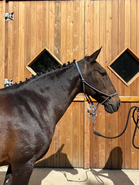 Wunderschöne Portugiesin die ein wunderbares Teampferd ist. Gerne ist sie mit ihren Menschen zusammen, liebt Bodenarbeit, geht super ins Gelände bei uns und springt ganz begabt und gerne. Rund herum ist sie ein sehr tolles Pferd mit dem man sehr viel Spass haben kann. Entsprechend der Rasse ist sie unheimlich menschenfreundlich und liebt feste Bezugspersonen, darüber hinaus sehr intelligent. Gerade ihre Intelligenz ist von allen Reitern nicht immer gewollt und schnelle Reglementierung wird öfter gesucht als zusammen mit dem Pferd eine Lösung zu finden und die Frage des Pferdes beantwortet. Als Standard Pferd das stumpf alle Runden drehen soll geht sie sicherlich nicht durch - Gott sei Dank ist sie aufmerksam und unheimlich wissbegierig, macht Spass und vor allem sie ist ein fühlendes und lebendes Wesen! Gehalten aktuell im Offenstall in einer großen Herde - absolut verträglich! Sie kennt es aber auch in der Box zu stehen nachts oder zwischendurch nach der Arbeit. Pferde sind LEBEWESEN: die hier beschriebenen Eigenschaften beruhen auf den Tatsachen wie sich das Pferd bei uns im Umgang und bei der Arbeit gezeigt hat. Wir freuen uns auf Ihren Anruf unter Tel:05435443 - weitere Fragen beantworten wir gerne.