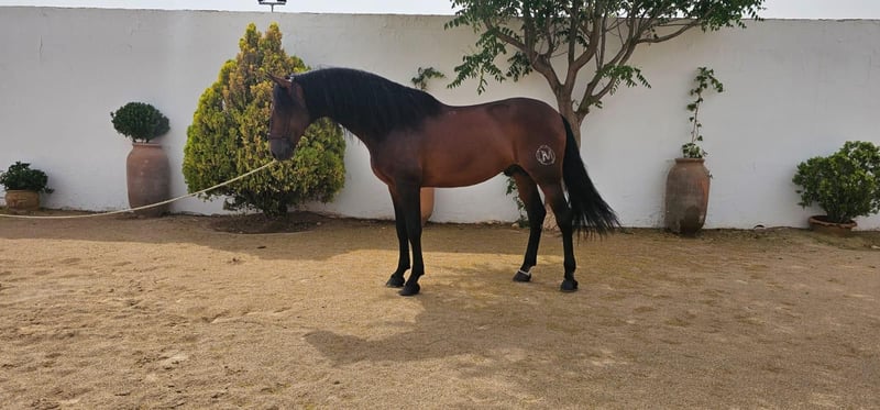 No vas a encontrar otro caballo como este. Un espectacular semental PRE, 1,74 de alzada, nacido en 2016, capa castaña oscura, movimientos de calidad, elegante, gran ejemplar disposición para el trabajo y muy divertido de montar. Tiene un carácter extraordinario: es noble, tranquilo, nada asustadizo y transmite una confianza total. Ideal para jinetes que quieran disfrutar en las pistas de concurso, en el campo o en el trabajo diario. Deportivo, pero con un comportamiento inmejorable fuera de la pista. Su genealogía es extraordinaria. Por parte de padre procede de María Fernanda de la Escalera, reconocida como mejor ganadería PRE del mundo en SICAB 2025. En su línea materna destacan Guardiola y Miura, dos de las ganaderías más antiguas y prestigiosas. Un caballo perfecto para quien busca calidad en competición y en ocio. 👉 Libre de piroplasmosis. 👉 Carácter 10/10 — seguro, equilibrado y colaborador. 📲 Más información por WhatsApp.
