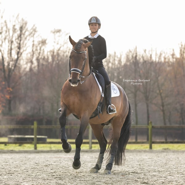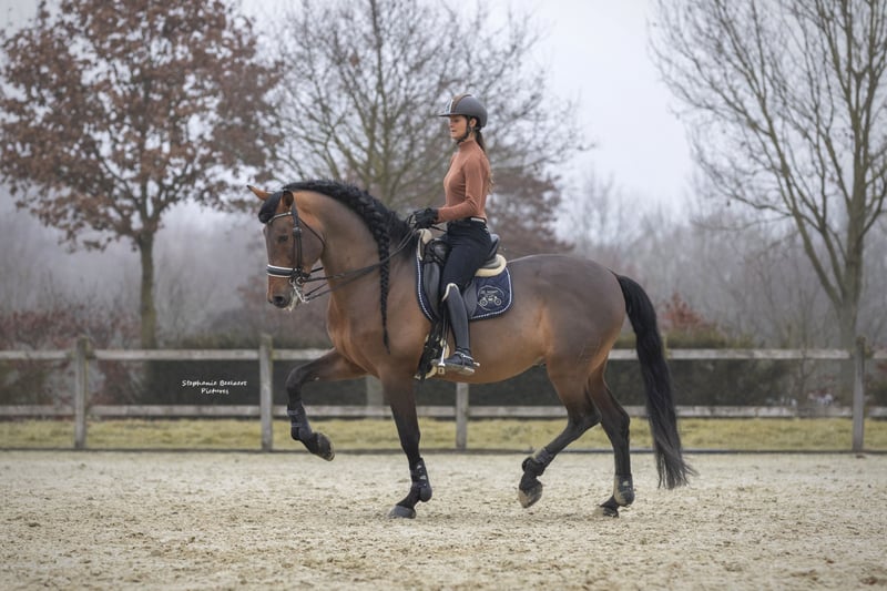 Ten wyjątkowy zatwierdzony ogier PRE, pochodzący z renomowanej linii krwi José Luis de la Escalera, szuka teraz nowego domu. Jest wyszkolony do poziomu Prix St. Georges i ma kilkuletnie doświadczenie w zawodach. W zeszłym roku zajął 4. miejsce w Finale Freestyle Mistrzostw Europy MCI z wynikiem 72,7%. Oprócz trzech imponujących chodów, jest bardzo odpowiedni do hodowli. Jego potomstwo konsekwentnie dziedziczy jego wielkość, elegancję i ruch. Kilka jego potomków jest obecnie jeżdżonych przeze mnie i zostało już wybranych do nadchodzących Mistrzostw Europy MCI. Szukasz utalentowanego ogiera PRE, który wzbogaci Twój program hodowlany? Nie wahaj się ze mną skontaktować.
