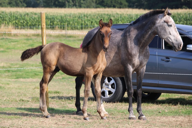 Dalí del Abadia ist ein sehr schön gebautes Pura Raza Española Hengstenfohlen, geboren am 19.05.2025. Dalí sticht bereits mit seinen beeindruckenden Körperbau im Alter von nur 3 Monaten hervor. Er ist, genau wie seine Mutter, ein ruhiger, abwartender Typ, der still und leise die gesamte Aufmerksamkeit genießt, die er erhält. Er wächst mit seinen Geschwistern in der Herde auf, kennt aber auch das Halfter und war bereits mehrmals beim Transport dabei. Dalí vereint mehrere beeindruckende Blutlinien; seine Mutter Artista Su ist eine Tochter des Elitehengstes Doblón-TR und mütterlicherseits eine Enkelin des Elitehengstes Impaciente II. Unser Deckhengst Bien de Scuderia (letzten 3 Fotos) ist ein Sohn des legendären Poeta de Susaeta. Möchten Sie mehr Informationen über Dalí oder möchten Sie unsere Zucht kennenlernen? Kontaktieren Sie uns gerne. Sie finden uns auch auf unserer Website, Facebook & Instagram (Yeguada El Abadia).