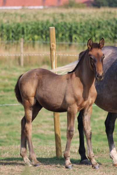 Dalí del Abadia est un très beau poulain étalon Pura Raza Española, né le 19.05.2025. Dalí se distingue par sa construction imposante à seulement 3 mois. Tout comme sa mère, il est d'un tempérament calme et attentif, appréciant silencieusement toute l'attention qu'il reçoit. Il grandit avec ses frères et sœurs dans le troupeau, mais connaît également le licol et a déjà été transporté à plusieurs reprises. Dalí combine plusieurs lignées impressionnantes ; sa mère, Artista Su, est une fille de l'étalon élite Doblón-TR et, du côté maternel, une petite-fille de l'étalon élite Impaciente II. Notre étalon de reproduction, Bien de Scuderia (dernières 3 photos), est un fils du légendaire Poeta de Susaeta. Souhaitez-vous plus d'informations concernant Dalí ou aimeriez-vous découvrir notre élevage ? N'hésitez pas à nous contacter. Vous pouvez également nous retrouver sur notre site web, Facebook et Instagram (Yeguada El Abadia).