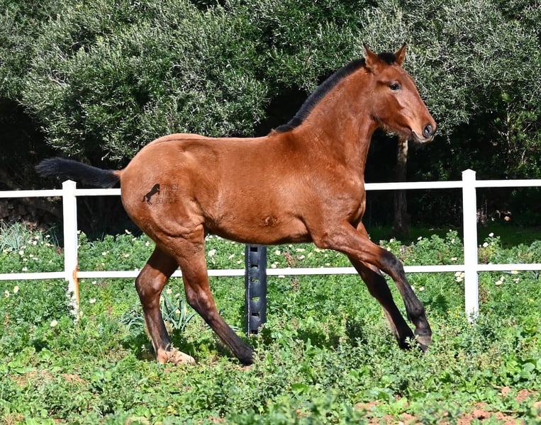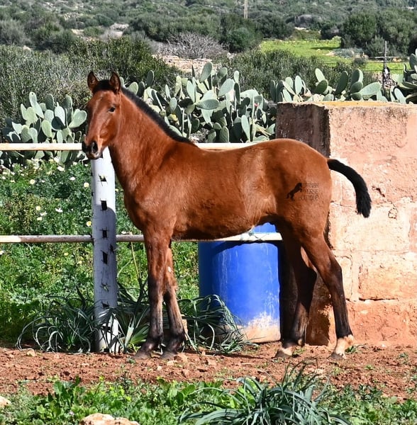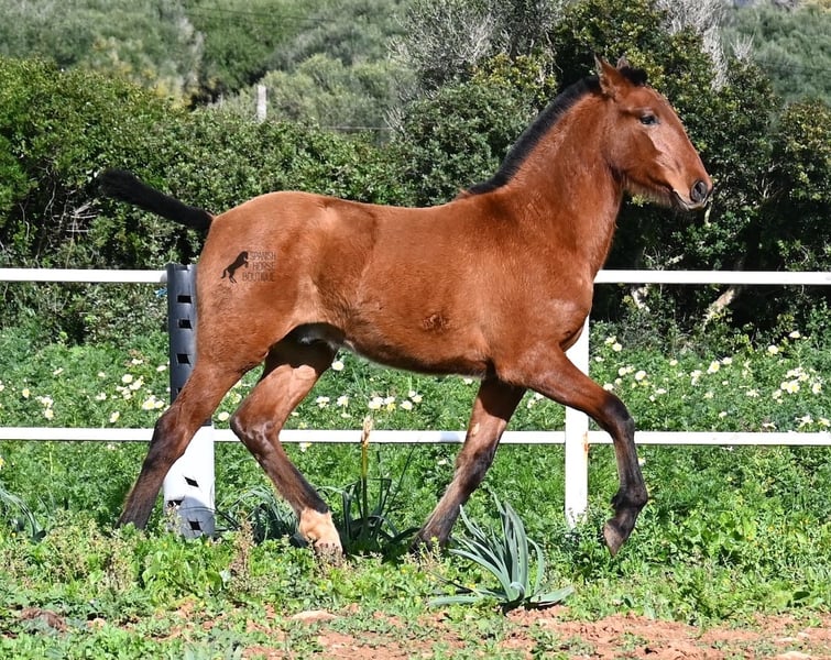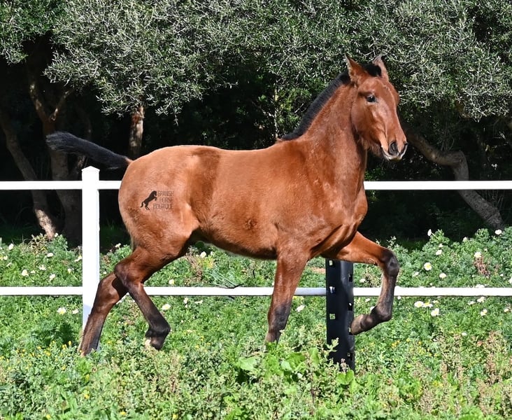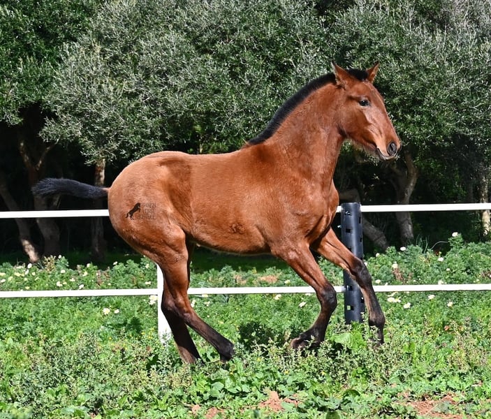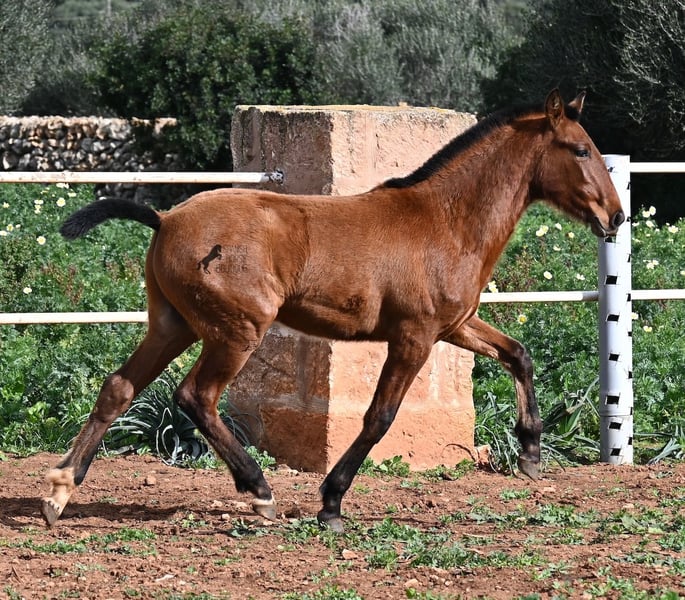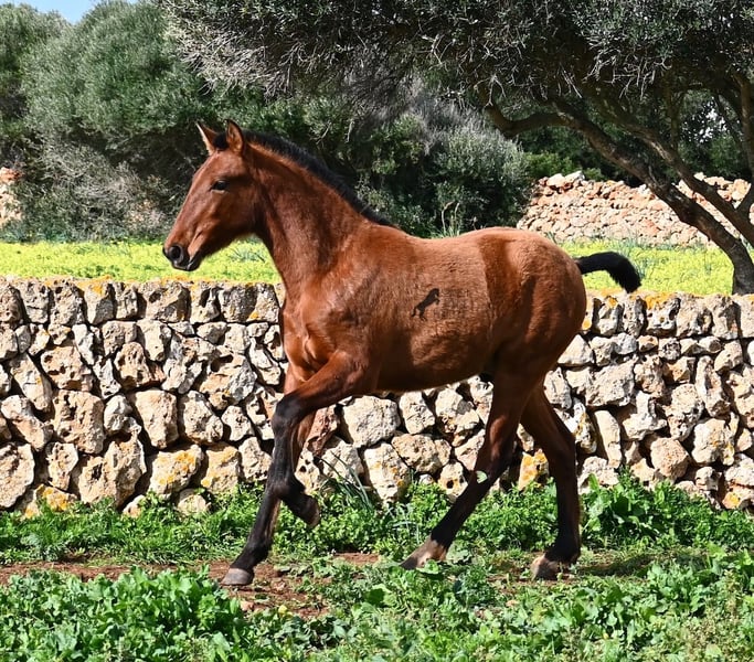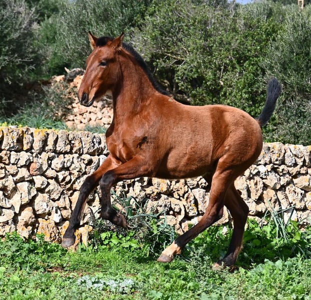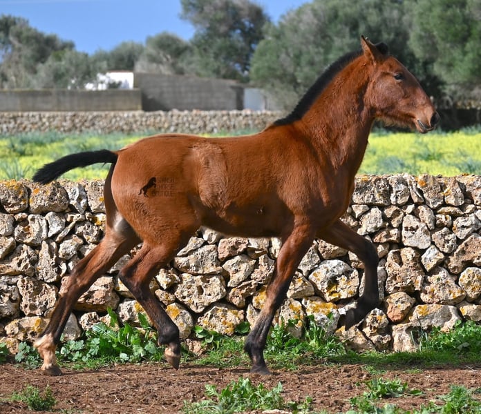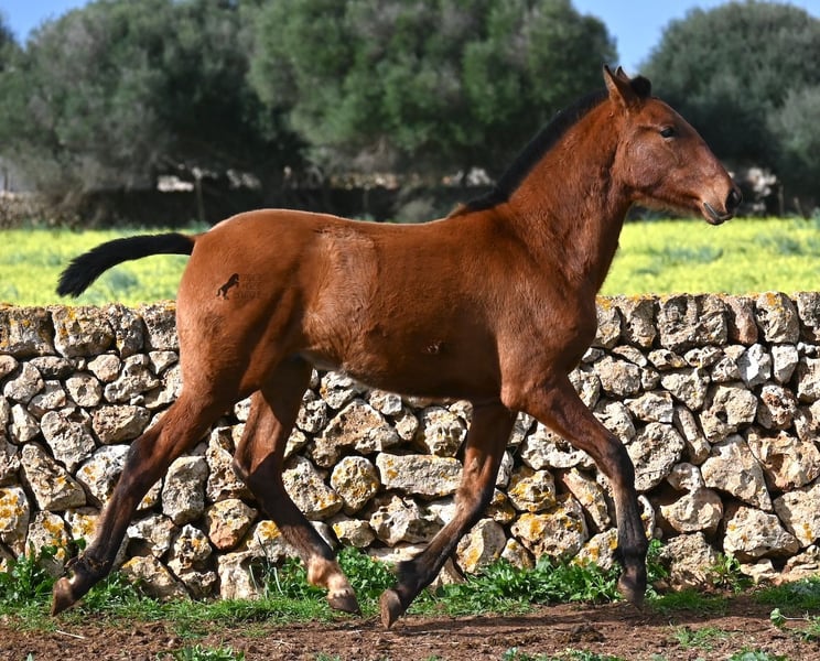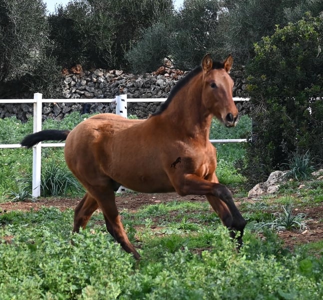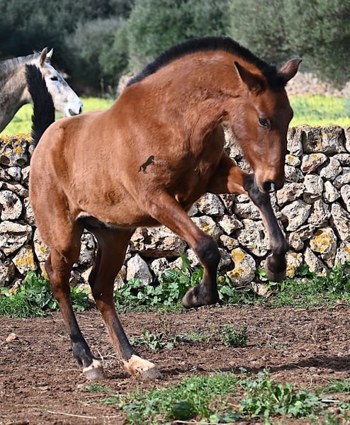 Dit PRE veulen (Andalusiër met ANCCE rascertificaat), geboren in de zomer van 2024, is nu al een echte blikvanger! Hij mag nog bij zijn moeder zijn, maar zal binnenkort gespeend worden en op zoek gaan naar zijn forever home. Hij leeft 24 uur per dag in een robuuste houderij en heeft, dankzij de harde grond van Menorca, echt een goede hoefkwaliteit en is goed aangebonden. Hoewel hij zo'n robuust leven leidt, is hij ongelooflijk knuffelig en zoekt hij meteen vriendelijk contact als je de paddock binnenkomt. Zijn afstamming doet de vrienden van het Spaanse paard meteen sneller kloppen! Van vaderskant is hij SENILLOSA gefokt, met ESCALERA in zijn voorouders. Aan moederszijde is hij een kleinzoon van DARTURO III, die afkomstig is van het ras RETAMALES, en zijn moeder heeft ook PLAZA DE ARMAS en CAMPO BAJO bloed in zich. Deze uitstekende fokkerij selectie is merkbaar in hem, want hij is niet alleen al mooi met een hoofd typisch voor het ras en barokke bouw, maar heeft ook geweldige beweging, die hij goed presenteert ondanks de stenige ondergrond. Een vrolijk, vriendelijk veulen voor een eerlijke prijs voor deze kwaliteit. Zijn vader meet 170 cm en ook hij zal een grotere jongen worden. Hij staat momenteel in Menorca! Video's en stamboom beschikbaar op aanvraag. Ik organiseer graag een AKU ter plaatse, transport of zelfs uw reis, mocht u hem persoonlijk komen bekijken. Details vind je op mijn website of in een gesprek. Saludos uit Spanje