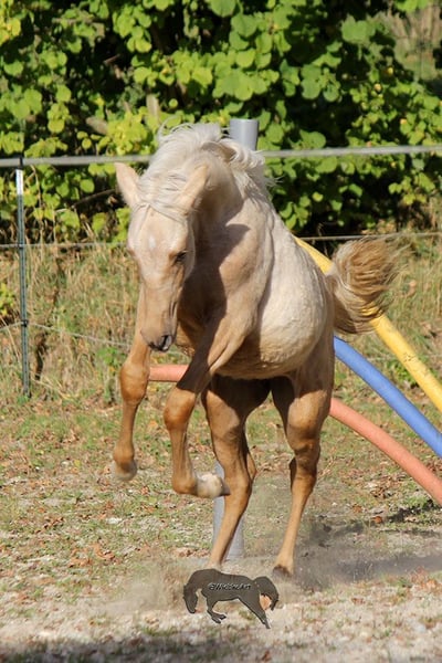 Domingo n'est pas seulement un véritable attrait visuel, mais c'est aussi un vrai rayon de soleil qui possède un excellent mouvement. Tout chez lui est parfaitement harmonieux à 100 %. Il est curieux, résistant au stress, bien qu'étant un jeune étalon, absolument brave, très sociable, tout simplement magnifique, naturellement en pleine santé et vit en stabulation libre. Domingo a des papiers de élevage de l'ANCCE. Du côté maternel, il est un descendant de Granate. Cette lignée est pour moi une garantie absolue de montabilité, de performance et d'un caractère en or, et associé à Simpatic V comme père, c'est juste parfait. Malheureusement, nous ne pouvons pas tous les garder, nous recherchons donc pour ce trésor un foyer de rêve avec le cœur lourd. Les deux dernières images montrent ses parents :-)
