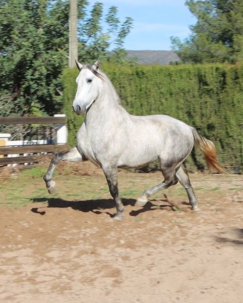 In vendita LOLO YPA II, un magnifico cavallo PRE di 3 anni appena compiuti, al 100% cartujano, allevato in completa libertà insieme ai suoi fratelli. È figlio della nostra LOLA GC, la cavalla di riferimento per la sua grande bellezza, e di QUEMADOR SCG, uno dei cavalli cartujani più funzionali degli ultimi tempi. Siamo certi che si tratti di un cavallo con un grande presente e un promettente futuro, come ci confermano le informazioni fornite dai proprietari dei suoi fratelli. Un cavallo da sogno. Alleghiamo foto di LOLO, della sua madre e del suo padre.