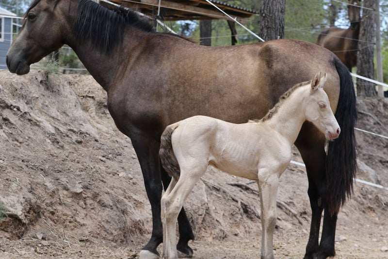 MANTECADO Zoals zijn naam al doet vermoeden – Mantecado – is hij puur zoet. Genoemd naar het traditionele zachte gebakje van boter, melk, eieren en suiker, is dit precies wat hem het beste omschrijft: zachtaardig, lief en vol charme. Hij is geboren in een huis vol liefde, waar hij is grootgebracht met aandacht, zorg en knuffels. Mantecado is een aanhankelijk veulentje dat graag bij mensen is. Je kunt tegen hem aanleunen of hem knuffelen – hij geniet altijd van liefdevolle aanrakingen. Hij kent de basisverzorging: regelmatig ontwormd, hoefverzorging elke zes weken, en gevoerd met een natuurlijke, uitgebalanceerde voeding van weidehooi, luzerne, Zwitserse kruidenvlokken en wat muesli. Daarnaast krijgt hij biotine en mineralensupplementen ter ondersteuning van gezonde groei van botten en gewrichten. Hij leeft in vrijheid in een gemengde kudde – met oudere merries die hem grenzen leren, een mini Shetlandpony en andere veulens om mee te socialiseren. Wij geloven dat een gevarieerde kudde de beste omgeving is voor de sociale ontwikkeling van een jong paard. Mantecado leeft 24/7 buiten, met alle ruimte om te bewegen, te spelen en gewoon paard te zijn. Hij kent al korte wandelingen aan het halster door het bos en gedraagt zich daarbij kalm en nieuwsgierig. Dankzij zijn bijzondere kleur draagt hij het CrPrl-gen, wat hem ook interessant maakt voor een fokprogramma. Mantecado is een veulentje dat harten verovert met zijn zachte en liefdevolle karakter. Als jij denkt dat je hem een leven vol vrijheid, respect en liefde kunt bieden, horen we graag van je. Hij wordt niet verkocht aan een plek waar hij 24 uur per dag in een stal moet staan. Alleen een liefdevol thuis dat zijn natuurlijke behoeften respecteert komt in aanmerking