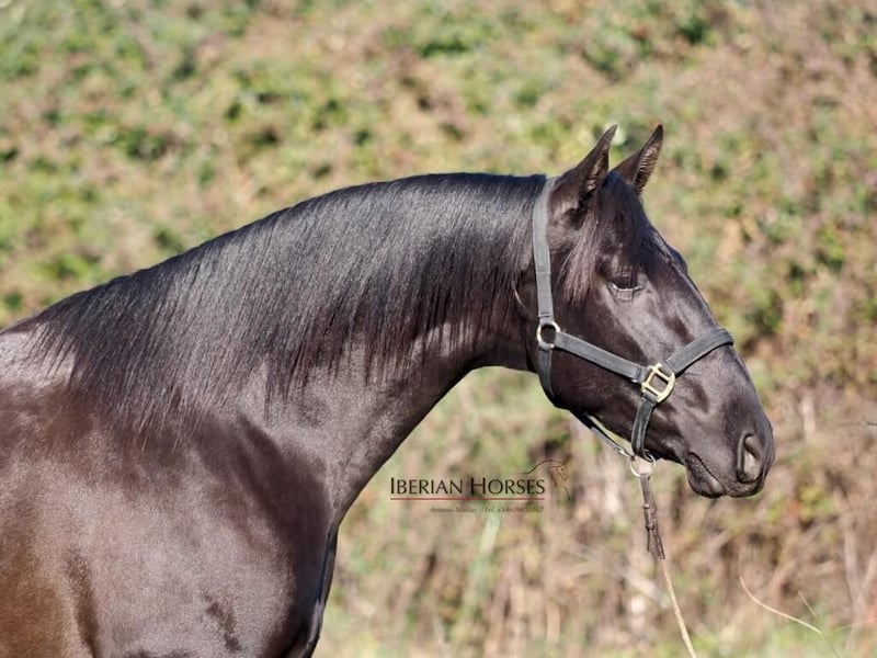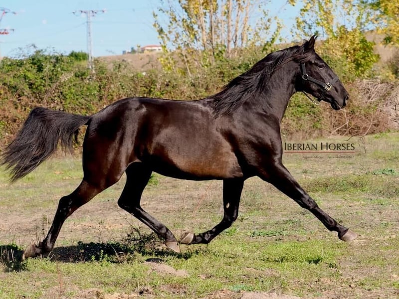 We present an extraordinary Pure Spanish Horse (PRE) born in 2022, a young stallion who already stands out for combining qualities that are rarely found in the same horse. With a height of 167 cm and a body structure clearly oriented toward sport, this colt shows highly functional conformation: a powerful hindquarter, a strong back, and an elevated wither that naturally promote balance, lightness, and pushing ability in all three gaits. His topline and overall build point to a highly promising future both in sport and breeding. In daily work, he displays outstanding gaits. The walk is wide and relaxed, with the perfect balance between elasticity and activity. The trot stands out for its suspension, cadence, and scope, always maintaining good use of the back. The canter is uphill, energetic, and well organized, making him an ideal candidate for progression in modern dressage. He is, in essence, a very complete black stallion, rare to find, both for his physical qualities and the excellence of his lineage. His pedigree is one of his greatest assets. He is sired by Sevillano de Mile, a highly regarded Grand Prix stallion admired for the expressiveness of his movements and his exceptional athletic ability. On the dam’s side, he descends from Kefrén de Señorío de Bariaín, thus adding a second proven and highly valued sports line, well appreciated among demanding breeders. He will soon be available as a breeding stallion for the upcoming season. The stud fee will be €600, plus the corresponding collection and shipping costs. An exceptional opportunity to incorporate top-level sport genetics.