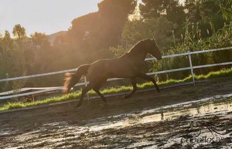 Tormento es un caballo PRE, de 1,59 m de altura, equipado con movimientos excepcionales. Nació en julio de 2021. Tiene un carácter muy dulce y cariñoso, y le encanta que sus cuidadores interactúen con él. Conoce la silla y la brida, y pronto será montado. Cuando trabaja con silla y brida, se muestra muy tranquilo y coopera en todo momento. Siempre es colaborador y confía en sus humanos. En el establo no presenta comportamientos de semental. No obstante, si se desea, puede ser montado en el lugar. Seguramente también sería muy interesante para la Working Equitation, pero por supuesto, también para jinetes de doma o de ocio con aspiraciones. Si desea más información sobre él, por favor, póngase en contacto con nosotros por teléfono. Con gusto enviamos más vídeos tras una conversación personal. Agradecemos su comprensión, pero no respondemos a consultas anónimas. El transporte puede organizarse a nivel mundial. Las visitas, con cita previa, son posibles en cualquier momento.