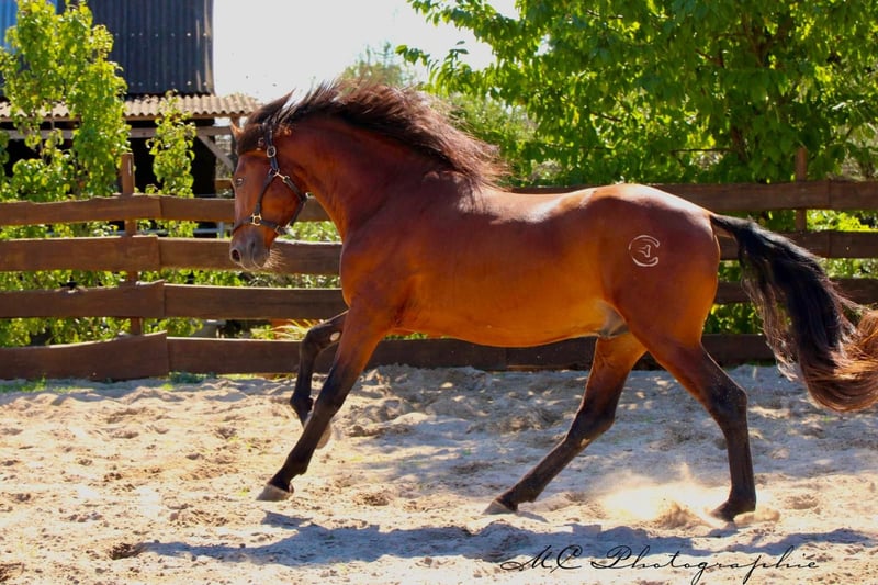Advertisement for sale: Horse For sale is a beautiful PRE (Pura Raza Española) stallion, born in 2022. With his light brown coat and a height of 158 cm, he is a real eye-catcher. Our young stallion already shows great promise for dressage. His movements are elegant and powerful, yet always balanced and controlled. His attentive nature and willingness to learn make working with him a real pleasure. The stallion is well socialized and is always friendly and curious towards people and other horses. He is a horse with potential that can grow into a real star in the dressage arena with the right encouragement and loving care. If you are looking for a talented and charismatic companion for dressage, then this young stallion could be just right for you. Please contact us for more information or to arrange a viewing. We look forward to introducing you to our light bay treasure.