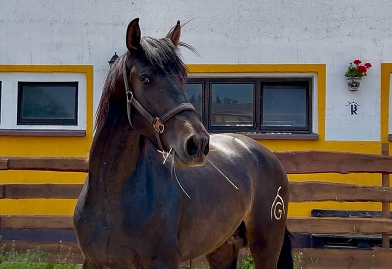 **Sales Advertisement: Dream Andalusian Stallion for Sale** We are offering a beautiful PRE stallion for sale. He will turn three years old in October 2025 and is still enjoying his youth. He is loadable and farrier-friendly. Barefoot. **Features:** - **Breed:** Pura Raza Española - **Gender:** Stallion - **Year of Birth:** 2022 - **Color:** Dark Brown - **Height:** 163 cm - **Use:** Dressage, leisure, later breeding. (He comes with a genetic analysis for color inheritance.) This elegant stallion impresses not only with his appealing appearance but also with his friendly character. The stallion is healthy. He lives in a species-appropriate stable and has regular contact with other horses, having grown up in absolute freedom in Spain. If you are interested or need further information, we look forward to your message. Viewings are possible by appointment. **Your new dream horse is waiting for you!**