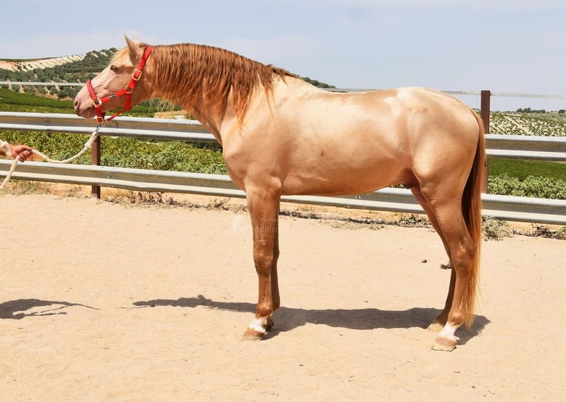 leuk karakter, nieuwsgierig, speels, knuffelig, rauw, gelongeerd, groot, barok, gekeurd, dekhengst, goede bewegingen, speciale kleur, Baya Perla (CrPrl) met papieren, goede röntgenfoto en Piro negatief, afstamming: Antonio Guiral Guarga, Castillo Villafranca, Paco Marti www.elegante-andalusier.com
