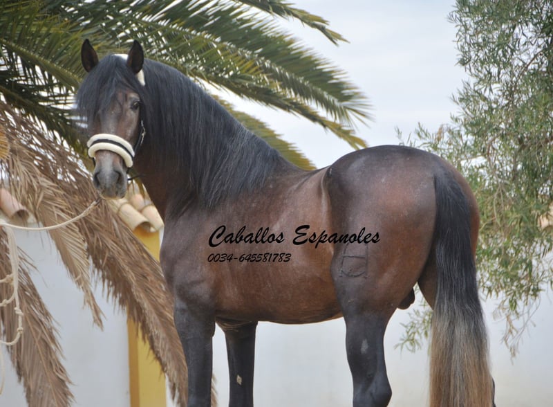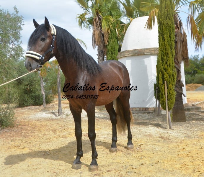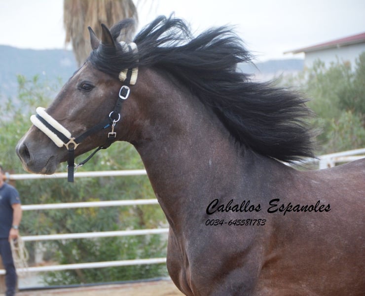For sale is an impressive PRE stallion, born in 2021. This young dressage prospect stands out with his striking appearance as a dark bay (brunfalbschimmel) and a height of 16.3 hh. His potential in dressage is already clearly evident, and he consistently demonstrates a willing and motivated attitude. With his elegant movement and balanced temperament, he is a true asset for ambitious competitive riders as well as for enthusiasts of this noble breed. This stallion possesses all the qualities to excel in the dressage arena. He has been ridden in basic gaits and always shows a good work ethic and eagerness to learn. Lineage: His grandsire is the licensed stallion Dictador, whose parents are also licensed. If you are interested in this promising horse, we look forward to hearing from you. The horse is being sold on behalf of the owner. He can stay with us for training. A veterinary certificate (AKU) can be arranged at short notice. International transport available.