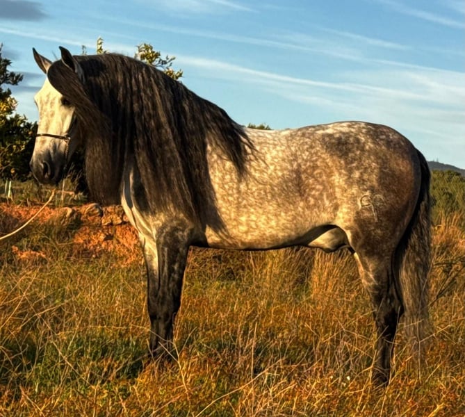 Are you ready for this breathtaking Fairytale Horse? This 5 years old, 1,60m high PRE Stallion is a real Stunner! With his baroque neck- & exterieur, his amazing manes, his smal head & incredible character he s definitely the perfect choice for the lovers of the original spanish breed! He is good basic ridden and a real gentleman under the saddle as well as in handling! For sure he s coming from best hands and a hugh vetting with all x-rays! Cat. 15 - 20k Location: València, Spain - Transport can be arranged worldwide! For more Informations contact us via What s App ➡️ +34 622 509 702 We speak 🇬🇧🇩🇪🇪🇸