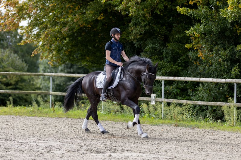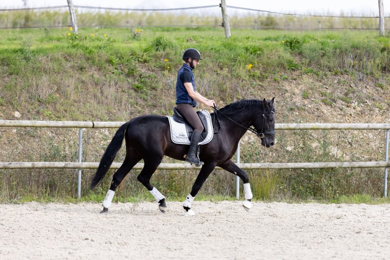 Réalito ist ein spanisches Vollblut, schwarz, 6 Jahre alt, 1,65 m groß. Er ist ein äußerst liebenswerter und sehr freundlicher Wallach, der perfekt für jemanden geeignet ist, der eine enge und schöne Beziehung zu seinem Pferd aufbauen möchte. Sein Wesen ist aufmerksam und nachdenklich, was ihn im Alltag sehr unkompliziert macht. Er verfügt über drei sehr gute Grundgangarten und besitzt eine hervorragende Körperhaltung.