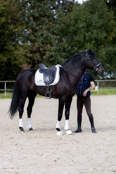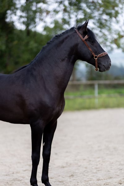 Réalito is a fully registered Spanish horse, black, 6 years old, standing at 16.1 hh. He is an adorable, very gentle horse who would be perfect for someone looking to build a strong, trusting relationship. He has a calm and thoughtful nature, making him easy to handle on a daily basis. He offers three very good gaits and has an excellent conformation.