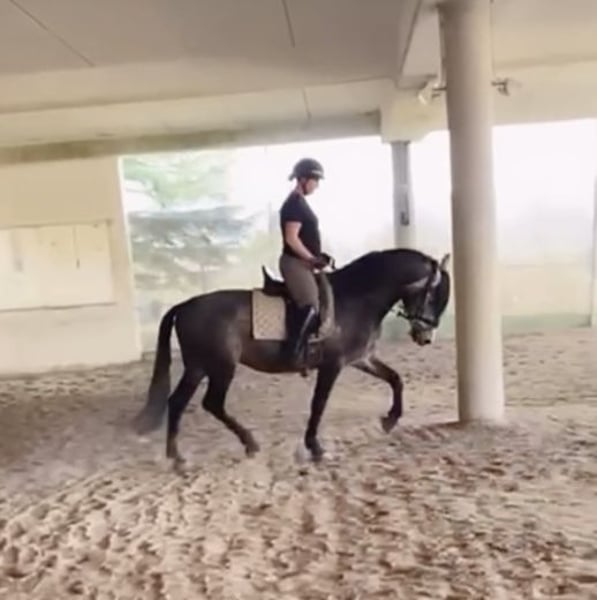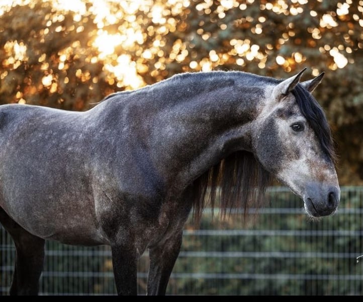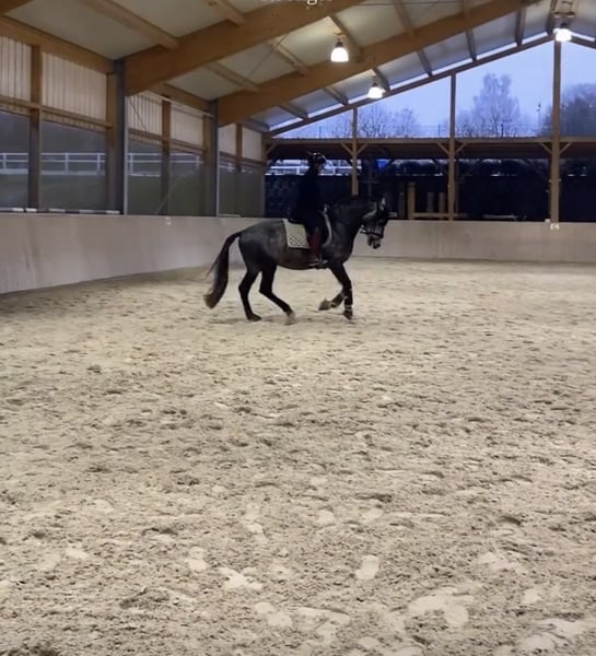 Ich verkaufe meinen 6jährigen PRE Hengst. Er ist 2020 geboren, 1, 63 cm groß und besitzt volle ANCCE Papiere. Er ist mit sehr guten Grundgangarten ausgestattet, mit wenig Campaneo und beherrscht mittlerweile die Lektionen der Klasse L. Er ist bei der FN als Sportpferd eingetragen, wurde allerdings noch nicht vorgestellt. Junio wird ausschließlich am Kappzaum longiert, Ausbinde- und Hilfszügel gibt es bei meiner Ausbildung nicht und sind ihm somit fremd. Er ist regelmäßig geimpft, entwurmt sowie dem Zahnarzt und dem Hufschmied vorgestellt. Er ist vorne beschlagen. Tagsüber hält sich Junio auf der Koppel/Paddock auf, nachts schläft er in der Box und steht dabei mit Stuten zusammen im Stall, was ihn überhaupt nicht stört. Im Auswärtstraining zeigt Junio sich artig, konzentriert und sehr sozial mit anderen Pferden. Er lässt sich vorbildlich verladen. Junio sucht jetzt seinen Menschen, der ihn auf seinem weiteren Lebensweg begleitet und ihn dabei fördert. Kennenlernen und Probereiten jederzeit nach Absprache möglich.