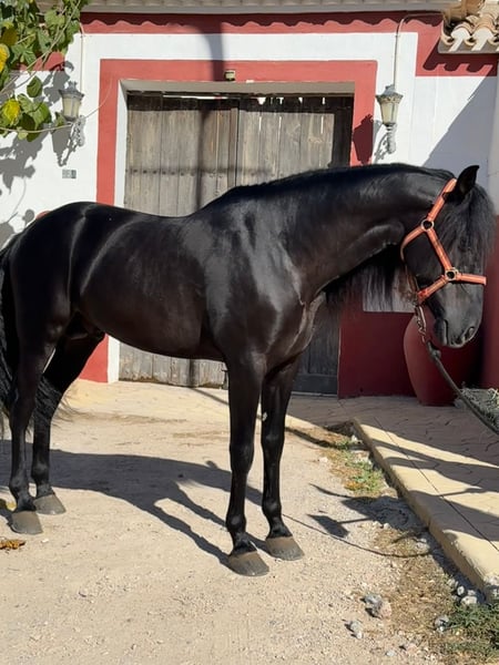 Okazja! Syn Lladro Mar Na sprzedaż pełnoprawny koń PRE, urodzony w 2019 roku, o czarnym umaszczeniu i wzroście 165 cm. Poziom 3 w ujeżdżeniu klasycznym. Ten 6-letni ogier charakteryzuje się znakomitym charakterem, łączącym elegancję, szlachetność i doskonałe predyspozycje do jazdy zarówno na torze, jak i w terenie.