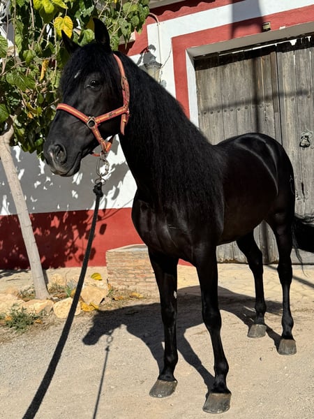 Gelegenheit! Sohn von Lladro Mar Zum Verkauf steht ein vollblütiger PRE-Hengst, geboren im Jahr 2019, schwarz, mit einer Stockmaß von 1,65 m. Dressurprüfung Klasse 3. Dieser 6-jährige Hengst verfügt über ein vorbildliches Temperament, das Eleganz, Noblesse und hervorragende Eignung für die Arbeit im Viereck sowie im Gelände vereint.