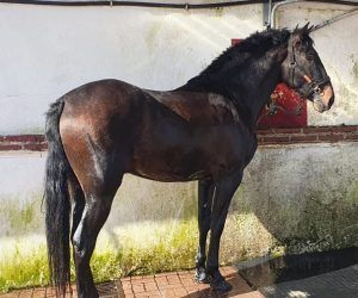 Groot potentieel en uitzonderlijk karakter om het op jouw manier vorm te geven. Als je weet hoe je met jonge paarden moet werken en op zoek bent naar een veulen met veel potentieel en een uitzonderlijk karakter, dan breng ik je hier een zeer interessant voorstel. Dit is een veulen dat net uit de wei komt, amper een maand getraind, maar nu al tekenen vertoont van een ongelooflijke metgezel. Hij is een van die exemplaren die vanaf het begin goed met mensen overweg kan, omdat hij met de hand is opgevoed, waardoor hij van nature dicht bij mensen staat en hen vertrouwt. Het interessante aan dit veulen is dat hij, ondanks zijn korte dressuuravaring, al bereden is. Dit zegt veel over zijn karakter, hij is makkelijk in de omgang, wat een groot voordeel zal zijn om hem zonder al te veel moeite tot zijn recht te laten komen. Daarnaast is het een sterk paard, goed gestructureerd, met "veel botten", zoals we vaak zeggen, wat aangeeft dat hij een goede fysieke basis heeft om het werk en de training die hem te wachten staan te ondersteunen. Hij is erg knap, we geloven dat hij nog knapper en getalenteerder zal worden, wat niet alleen belangrijk is voor wedstrijden, maar ook voor het dagelijks leven, zodat je elke keer als je hem ziet, visuele voldoening krijgt. Samengevat heeft dit veulen niet alleen het karakter en het gebruiksgemak dat je zoekt, maar ook de fysieke kracht en uitstraling die een jong paard een ideale kandidaat maken voor verdere training en ontwikkeling. Ik denk dat hij perfect voor jou zou kunnen zijn als je tot zover hebt gelezen. Zou je meer over hem willen weten?