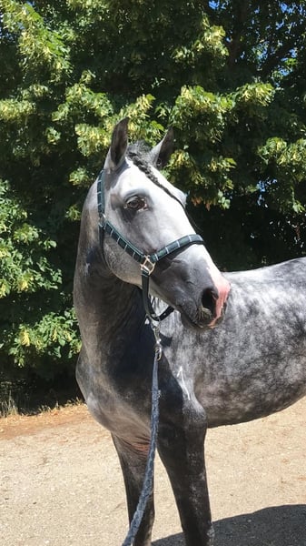 Stallone PRE, 5 years old, with excellent conformation and three expansive, elastic, and regular gaits, making him ideal for dressage. He has successfully competed in the FISE Young Horses 4-year-old dressage category, achieving an average score of 73%, demonstrating significant potential for a continued competitive career. A very good-natured horse, balanced and cooperative, easy to handle on a daily basis, and quick to learn in training. In perfect health, regularly checked by a veterinarian and farrier.