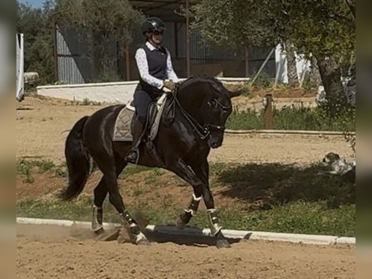 LUXURIOUS Stunning black PRE stallion, approved for breeding by the breed’s stud book (ANCCE). Excellent gaits Ridden both indoors and outdoors. Ideal for leisure, dressage, hacking, and more. Actual height: 1.65 m (16.1 hh) Please contact us for more information. The horse is located near Seville, Spain (Andalusia).