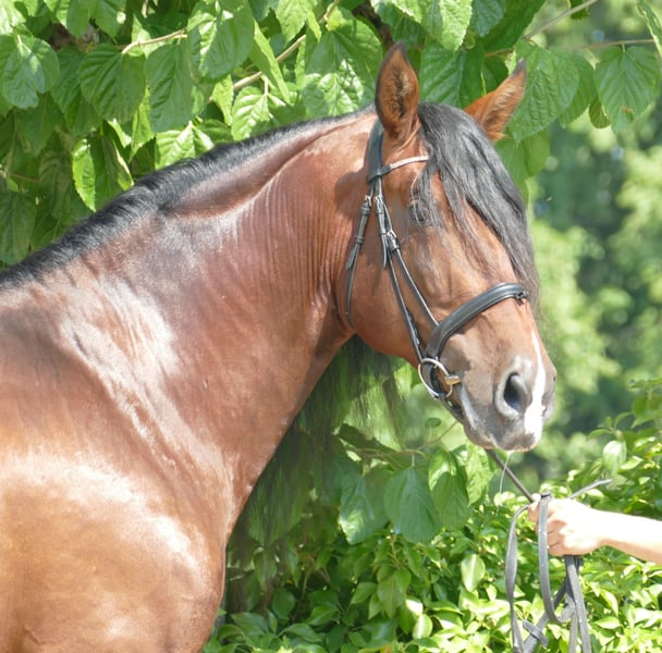 Très beau PRE baroque, polyvalent, facile pour cavalier amateur. Allures très correctes, caractère calme et tranquille. Travail de deux pistes, début changements de pied. Extérieur ok. Peut être castré chez nous, si nécessaire Radios propres