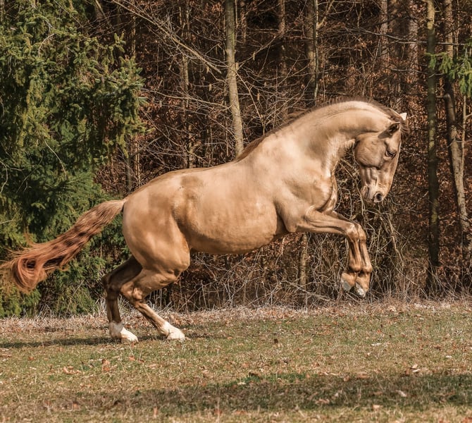 Deckhengst 2026 – Remache VLR PRE-Deckhengst ab April 2026 im Frischsamenversand Deckstation: Steinsberg Daten • Geboren: 13.04.2020 • Stockmaß: 1,65 m • Körung: anerkannt durch ANCCE • Zuchtbuch: im Hengstbuch I des Zuchtverband für deutsche Pferde (ZfDP) eingetragen • Für Warmblutstuten zugelassen Gesundheit • PSSM1: frei • WFFS: frei • Röntgen ohne Befund Genetik / Farbe Genotyp: gg Aa EE CC Prl Prl ➡️ Homozygot für Pearl (Prl/Prl) Remache vererbt somit 100 % das Pearl-Gen an seine Nachkommen.