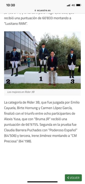 🌟 Rarität – Grand Prix-klassifizierte PRE-Stute mit außergewöhnlicher Qualität und Noblesse 🌟 Wir präsentieren eine ausdrucksstarke, 12-jährige PRE-Stute (169 cm) von außergewöhnlicher Klasse – eine wahre Ausnahmeerscheinung mit sportlichem Potenzial, feiner Rittigkeit und beeindruckender Präsenz auf höchstem Niveau. Eine Stute, wie man sie nur selten findet: exzellent gefördert, fein geritten und charakterlich ein Juwel. ✨ Sportliche Referenz der Spitzenklasse Diese Stute wurde offiziell bis Grand Prix vorgestellt – war unter anderem auch in Deutschland schon auf Turnier. Ihre Erfolgsbilanz spricht für sich: nahezu ausnahmslos platziert oder siegreich, souverän und zuverlässig im Viereck, stets konzentriert, leistungsbereit und durchlässig. Sie brilliert mit sicheren Lektionen wie Piaffe, Passage, Wechsel – jederzeit präzise und mühelos abrufbar. ✨ Exzellente Rittigkeit & Charakter Sie überzeugt durch ihre besondere Leichtrittigkeit und Feinheit, ist brav an der Trense zu reiten und zeigt sich auch im Gelände absolut unkompliziert – sogar von einer jungen Reiterin allein. Im täglichen Umgang ist sie nervenstark, freundlich und zuverlässig – verlädt problemlos, reist stressfrei und zeigt sich auch in neuer Umgebung sofort ausgeglichen. „Bruma“ – Ihr Name bedeutet „Nebel“, und ebenso fein, leicht und durchlässig ist sie zu reiten. Eine Erscheinung, die Eindruck hinterlässt – nicht laut, sondern tief bewegend. Aktuell befindet sich die Stute im professionellen Beritt und wird kontinuierlich auf hohem Niveau gefördert. Eine aktuelle Ankaufsuntersuchung inkl. Röntgenbildern liegt ohne Befund vor. Ihre elastischen, ausdrucksstarken Grundgangarten erinnern an ein modernes Warmblut, gepaart mit der typischen Ausstrahlung und inneren Stärke des Pura Raza Española. Diese PRE-Stute entstammt einer vorbildlichen Zuchtlinie: Vater MANCHEGO ARB, mehrfacher Spanischer Meister und SICAB‑Goldmedaillengewinner, sowie WM‑Teilnehmer, prägen ihren herausragenden Typ und Bewegungsablauf. Ihre Mutter VENUS XIIII rundet das Pedigree durch solide, auf Barocklinien basierende Verpaarung ab – eine Kombination, die in Bruma höchste Leistungsbereitschaft, Charme und Ausdruck verein Diese Stute ist nicht nur ein sportliches Talent – sie ist eine Partnerin fürs Leben, eine wahre Lebensversicherung für den ambitionierten, feinfühligen Reiter, der Qualität zu schätzen weiß. Aufgrund ihrer Feinheit und Leistungsbereitschaft wünschen wir uns für sie einen erfahrenen Reiter mit Einfühlungsvermögen. Sie wird aus privaten Zeitgründen in beste Hände abgegeben. Standort Nähe Frankfurt - Deutschland. Nur ernst gemeinte Anfragen – Preis entspricht der Qualität.